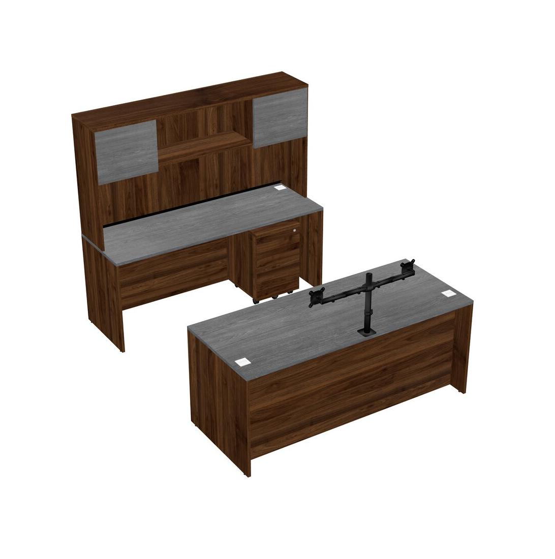 Office Parallel Desk Credenza Desk + Wooden Mobile Drawers + Hutch + Monitor Arm (double Arms)