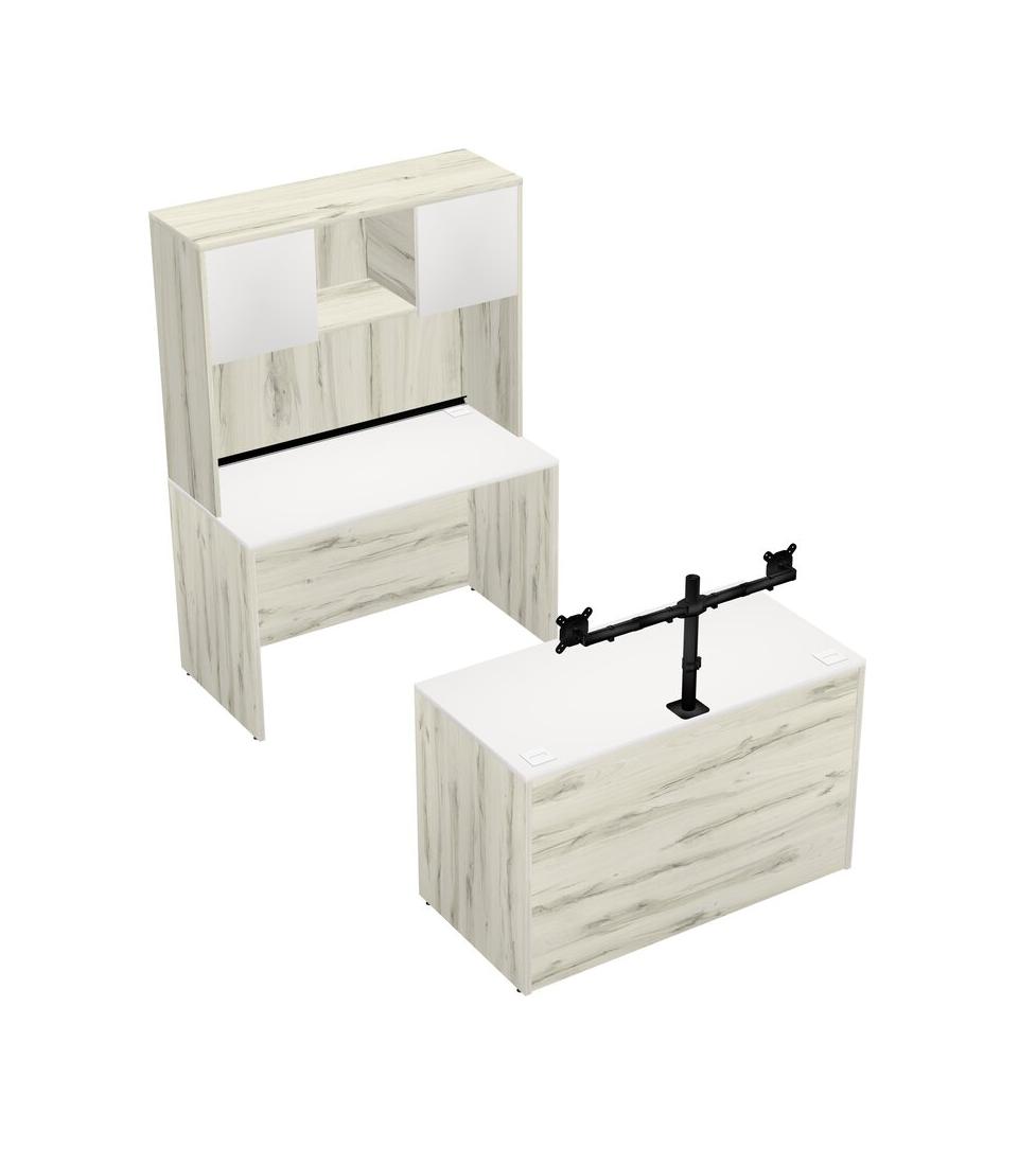 Office Parallel Desk Credenza Desk + Hutch + Monitor Arm (double Arms)