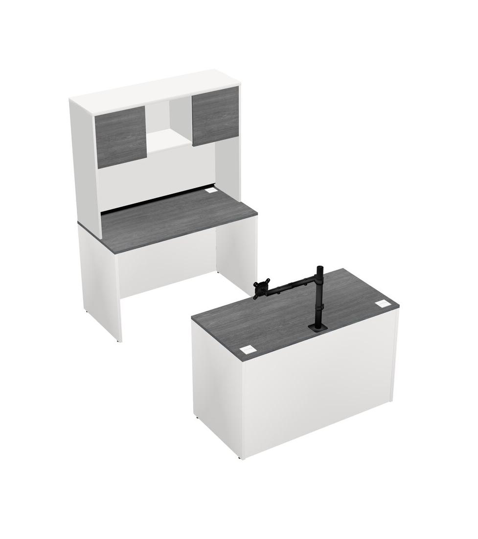 Office Parallel Desk Credenza Desk + Hutch + Monitor Arm (single Arm)