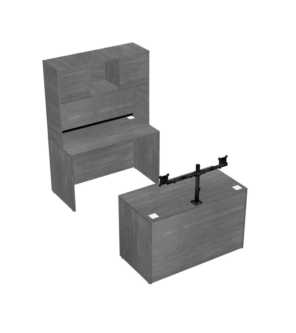 Office Parallel Desk Credenza Desk + Hutch + Monitor Arm (double Arms)