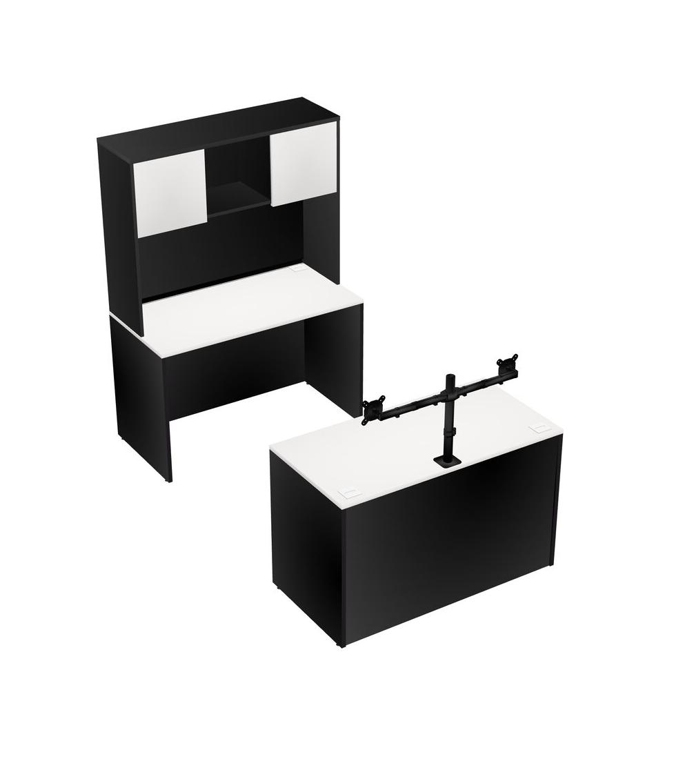 Office Parallel Desk Credenza Desk + Hutch + Monitor Arm (double Arms)