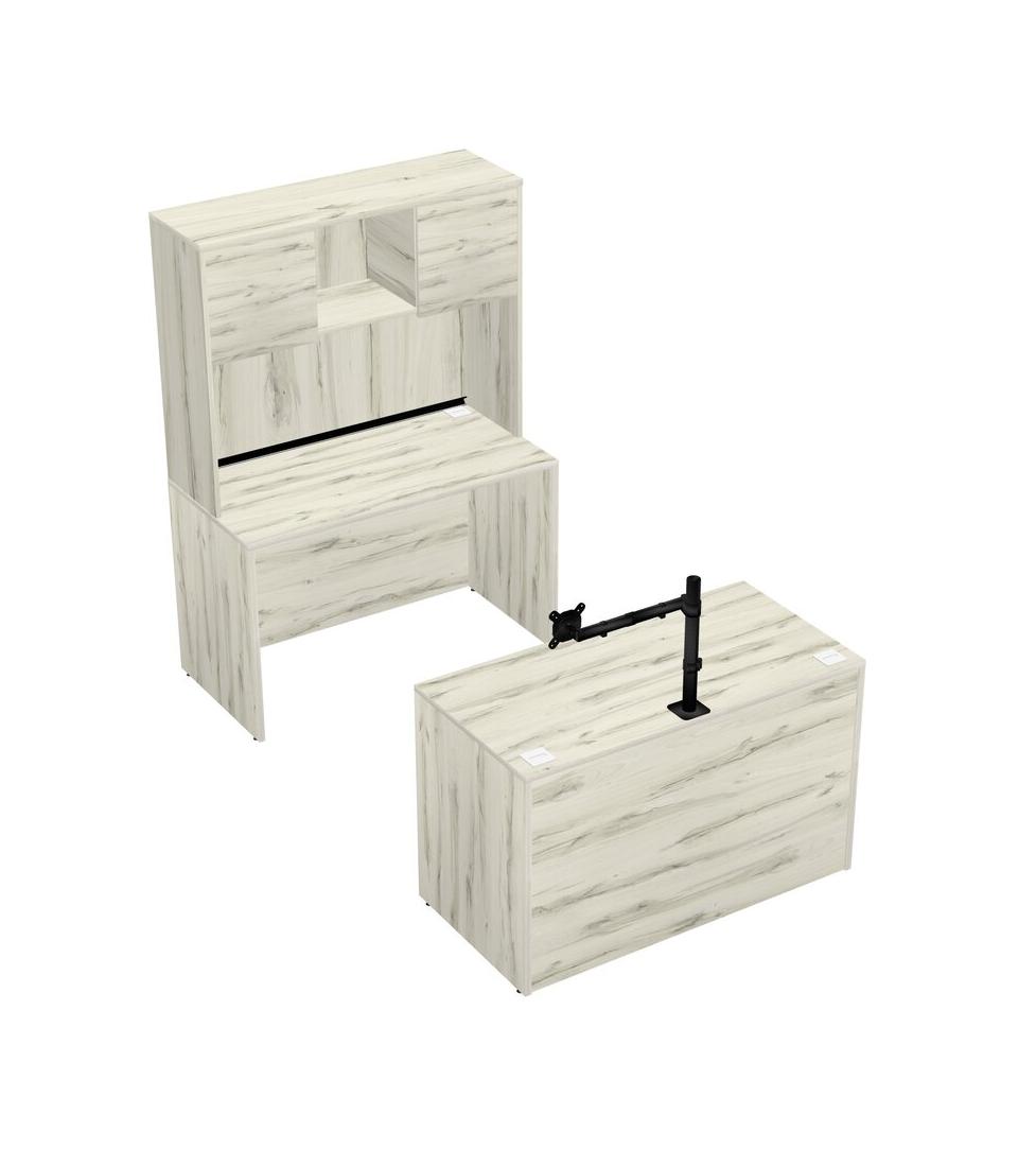 Office Parallel Desk Credenza Desk + Hutch + Monitor Arm (single Arm)