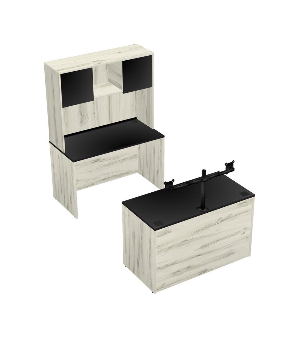 Office Parallel Desk Credenza Desk + Hutch + Monitor Arm (double Arms)
