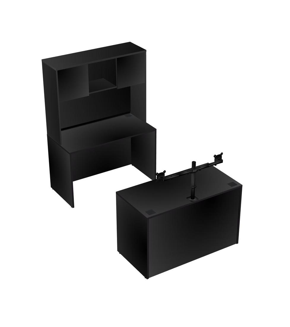 Office Parallel Desk Credenza Desk + Hutch + Monitor Arm (double Arms)