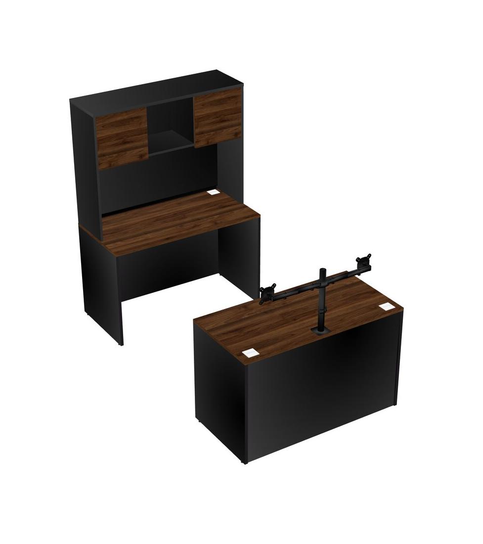 Office Parallel Desk Credenza Desk + Hutch + Monitor Arm (double Arms)