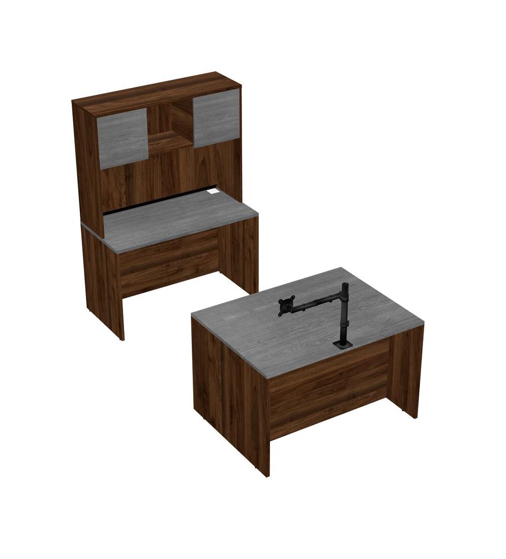 Office Parallel Desk Credenza Desk + Hutch + Monitor Arm (single Arm)