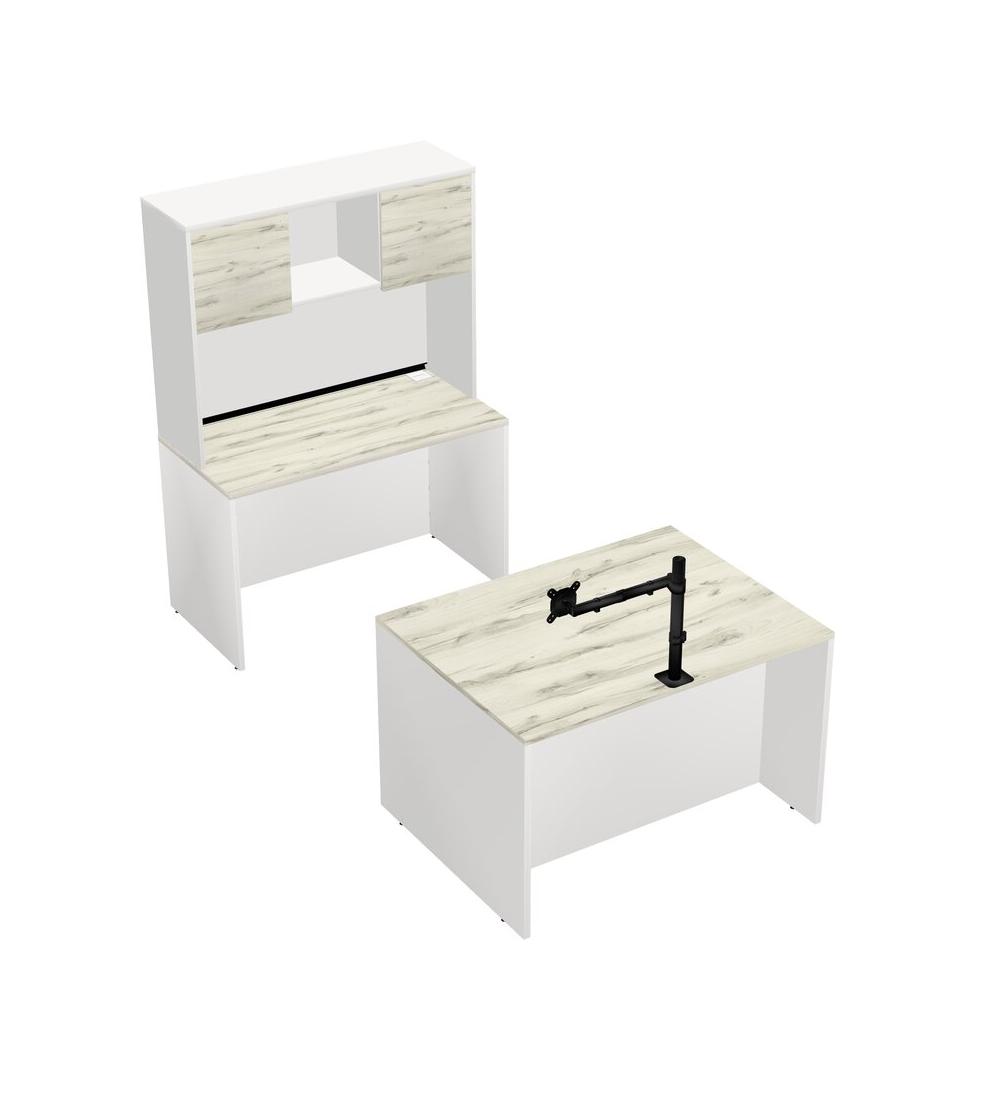 Office Parallel Desk Credenza Desk + Hutch + Monitor Arm (single Arm)