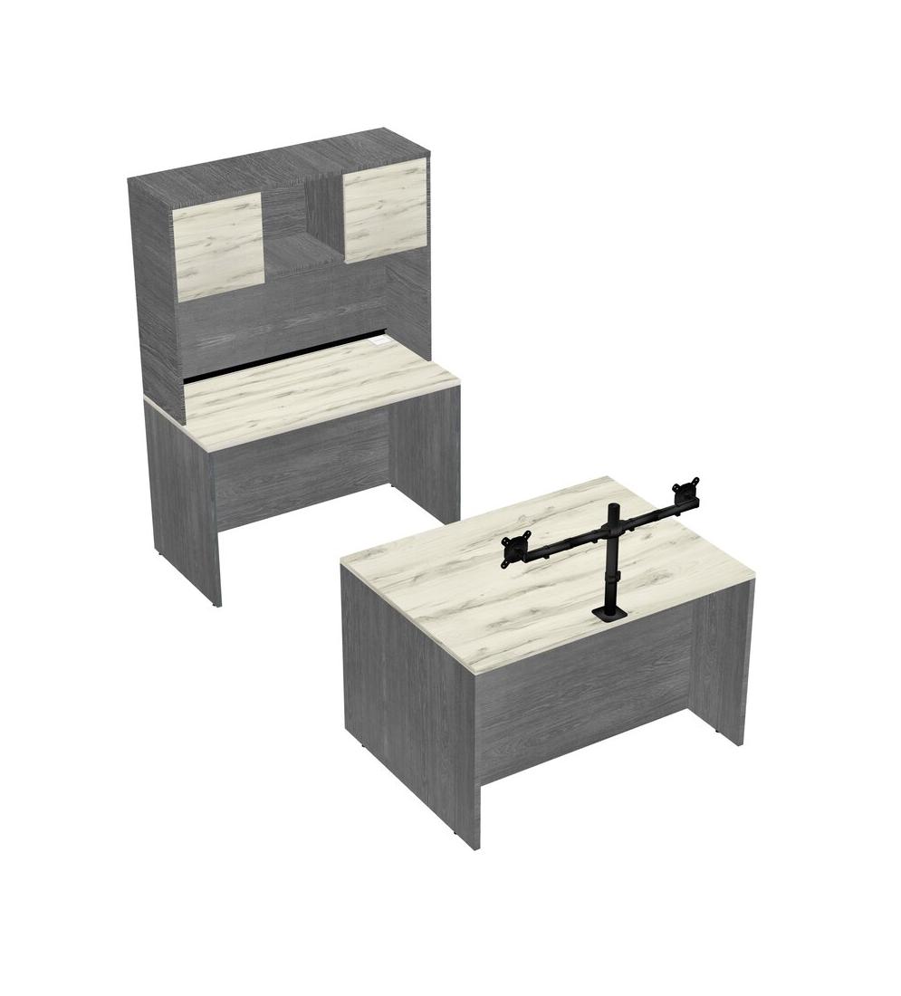 Office Parallel Desk Credenza Desk + Hutch + Monitor Arm (double Arms)