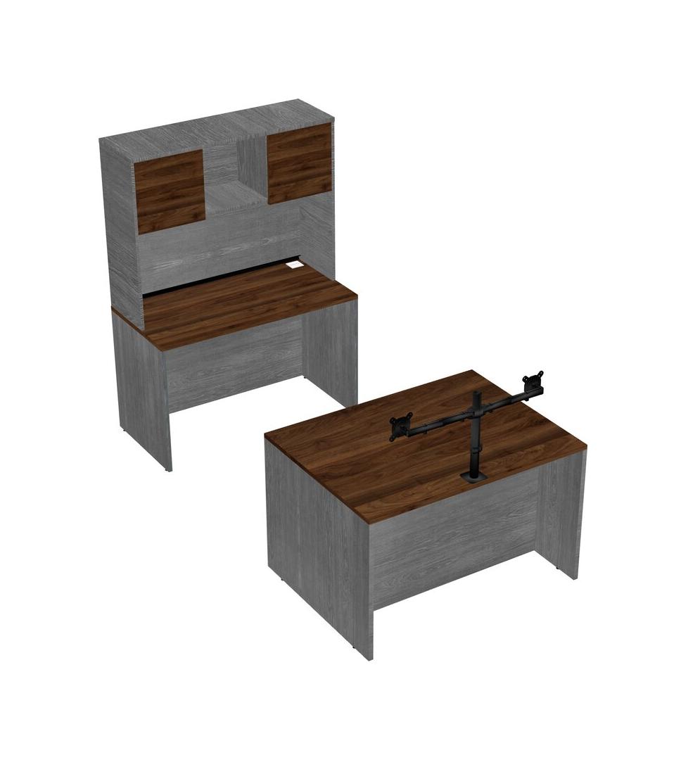 Office Parallel Desk Credenza Desk + Hutch + Monitor Arm (double Arms)