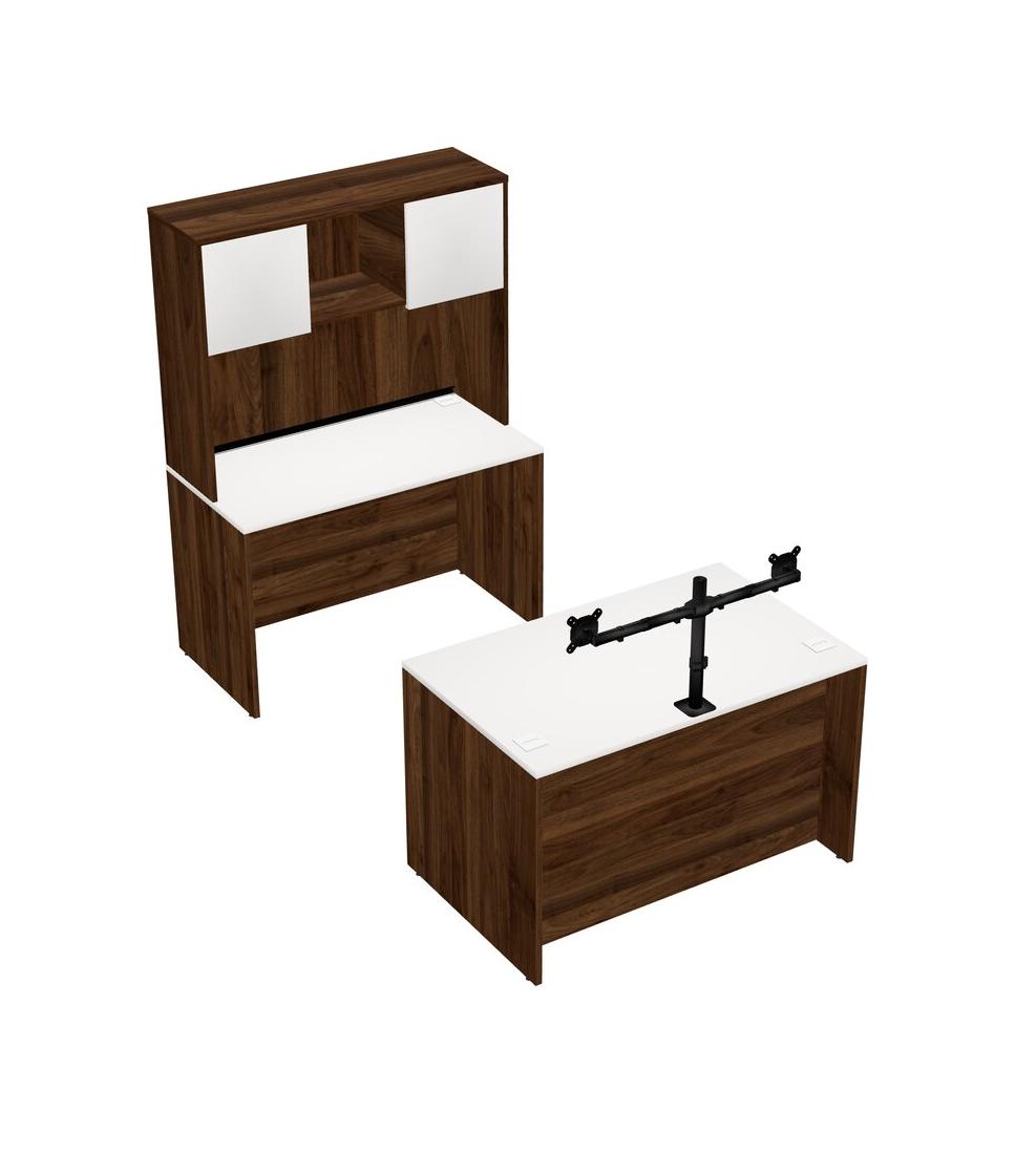 Office Parallel Desk Credenza Desk + Hutch + Monitor Arm (double Arms)