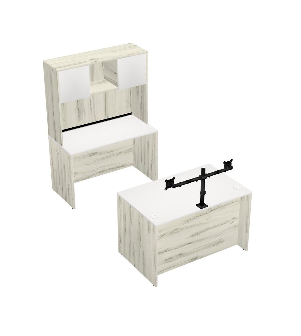 Office Parallel Desk Credenza Desk + Hutch + Monitor Arm (double Arms)