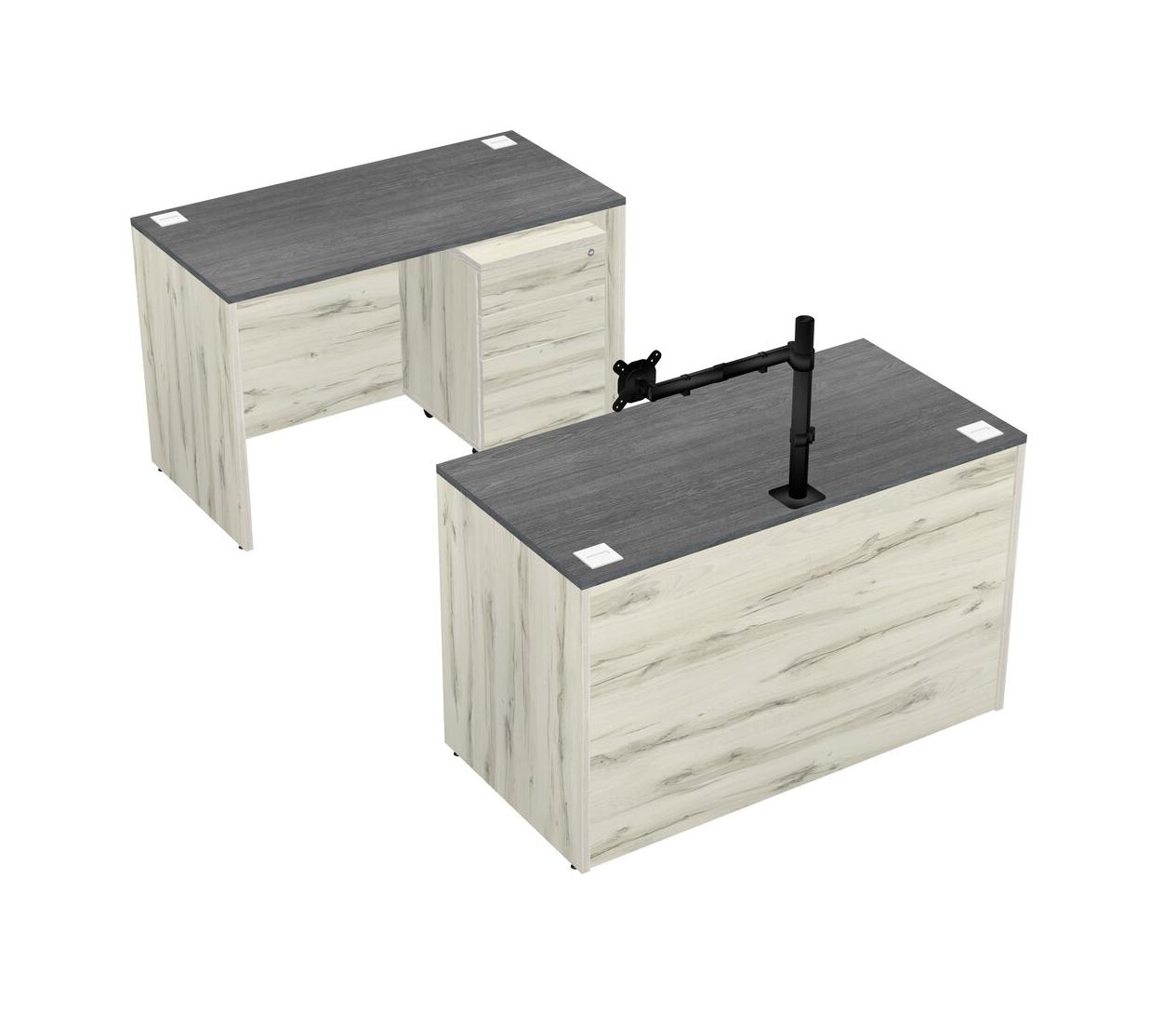 Office Parallel Desk Credenza Desk + Wooden Mobile Drawers + Monitor Arm (single Arm)