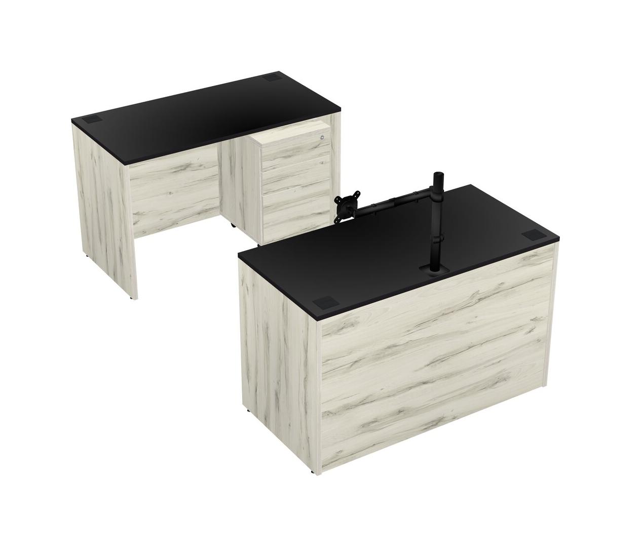 Office Parallel Desk Credenza Desk + Wooden Mobile Drawers + Monitor Arm (single Arm)