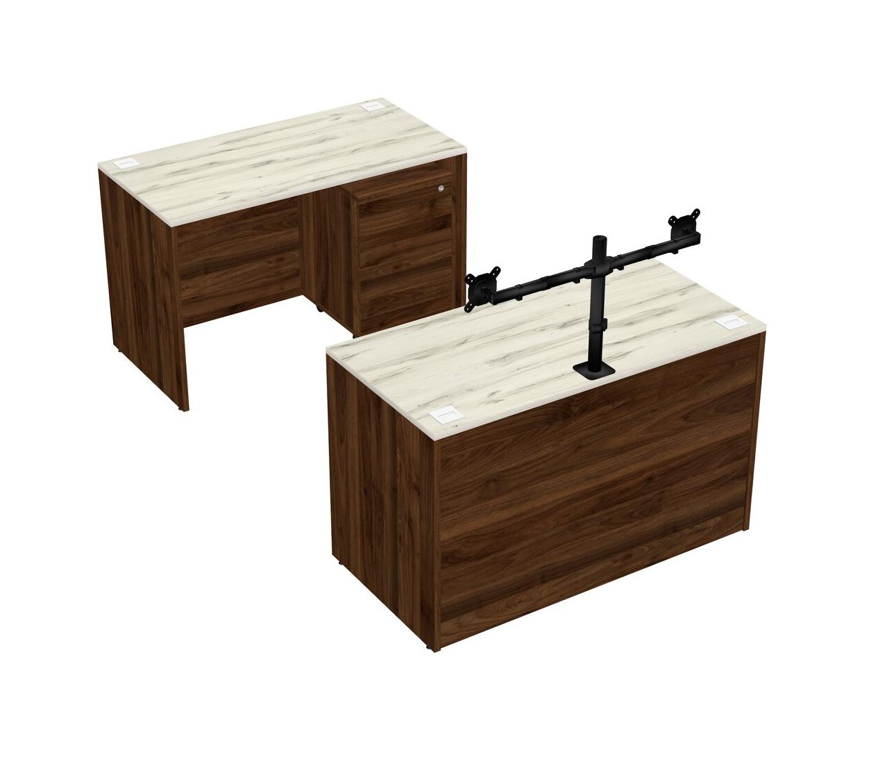 Office Parallel Desk Credenza Desk + Wooden Mobile Drawers + Monitor Arm (double Arms)