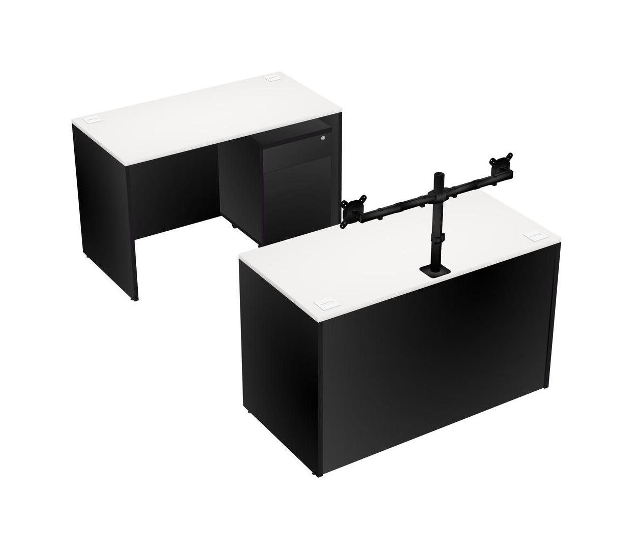 Office Parallel Desk Credenza Desk + Wooden Mobile Drawers + Monitor Arm (double Arms)