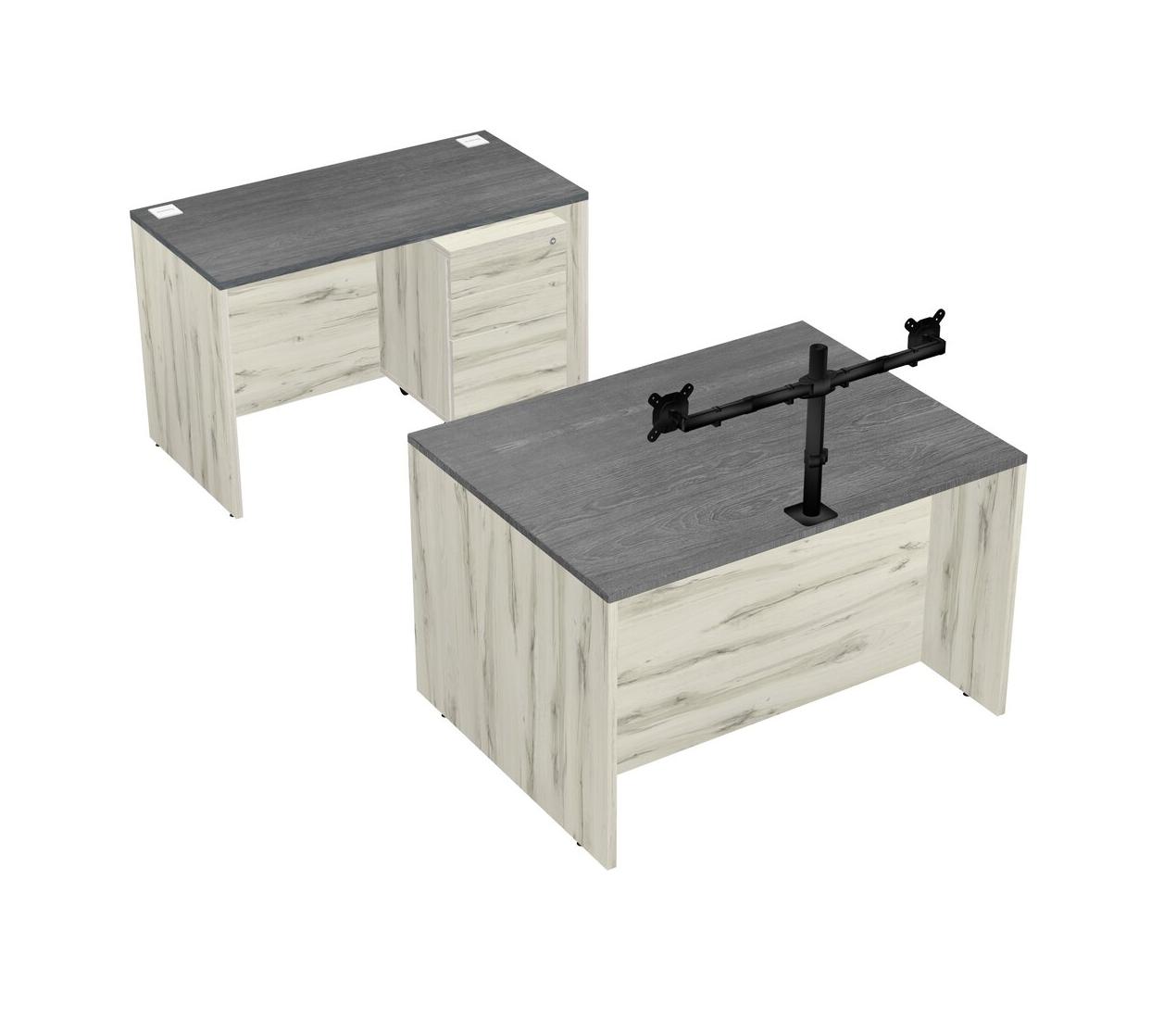 Office Parallel Desk Credenza Desk + Wooden Mobile Drawers + Monitor Arm (double Arms)