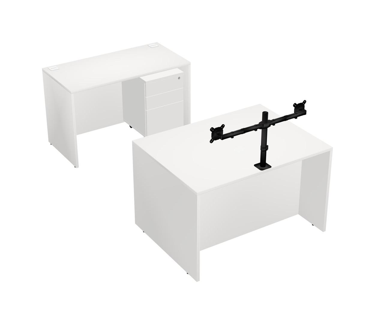 Office Parallel Desk Credenza Desk + Wooden Mobile Drawers + Monitor Arm (double Arms)