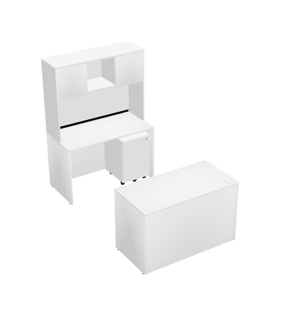 Office Parallel Desk Credenza Desk + Wooden Mobile Drawers + Hutch