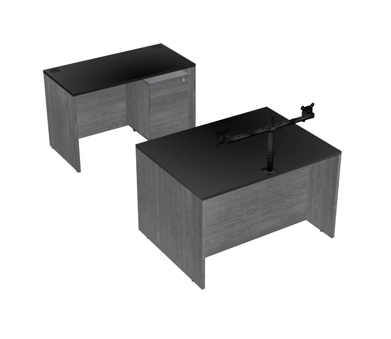 Office Parallel Desk Credenza Desk + Wooden Mobile Drawers + Monitor Arm (double Arms)