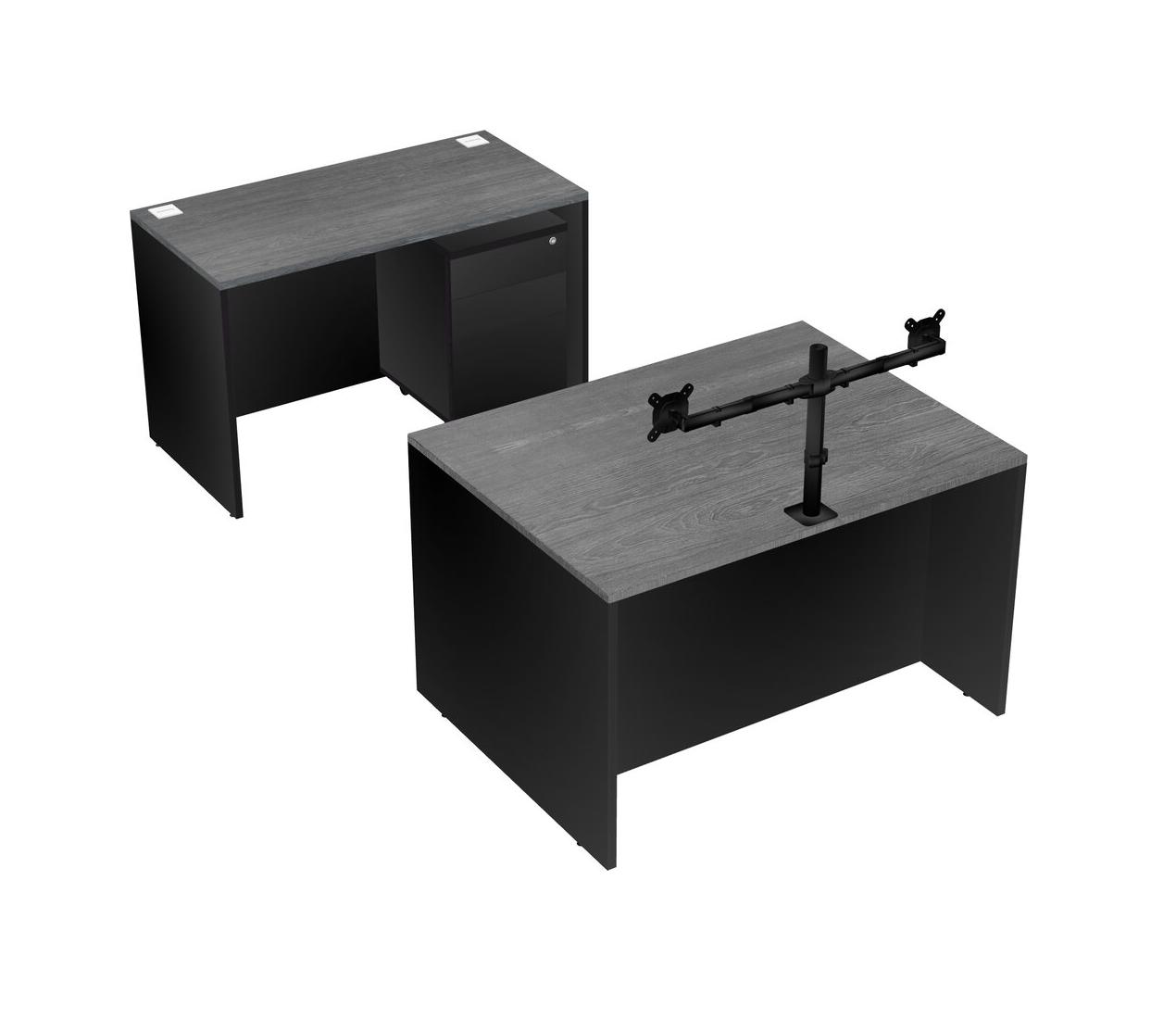 Office Parallel Desk Credenza Desk + Wooden Mobile Drawers + Monitor Arm (double Arms)