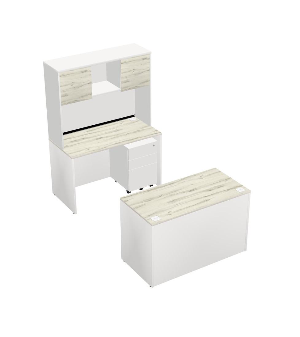 Office Parallel Desk Credenza Desk + Wooden Mobile Drawers + Hutch