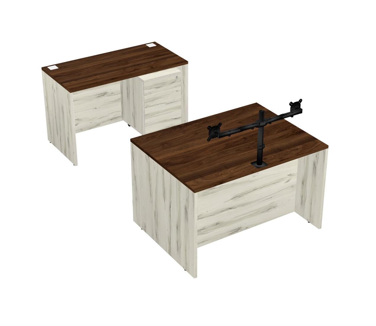 Office Parallel Desk Credenza Desk + Wooden Mobile Drawers + Monitor Arm (double Arms)
