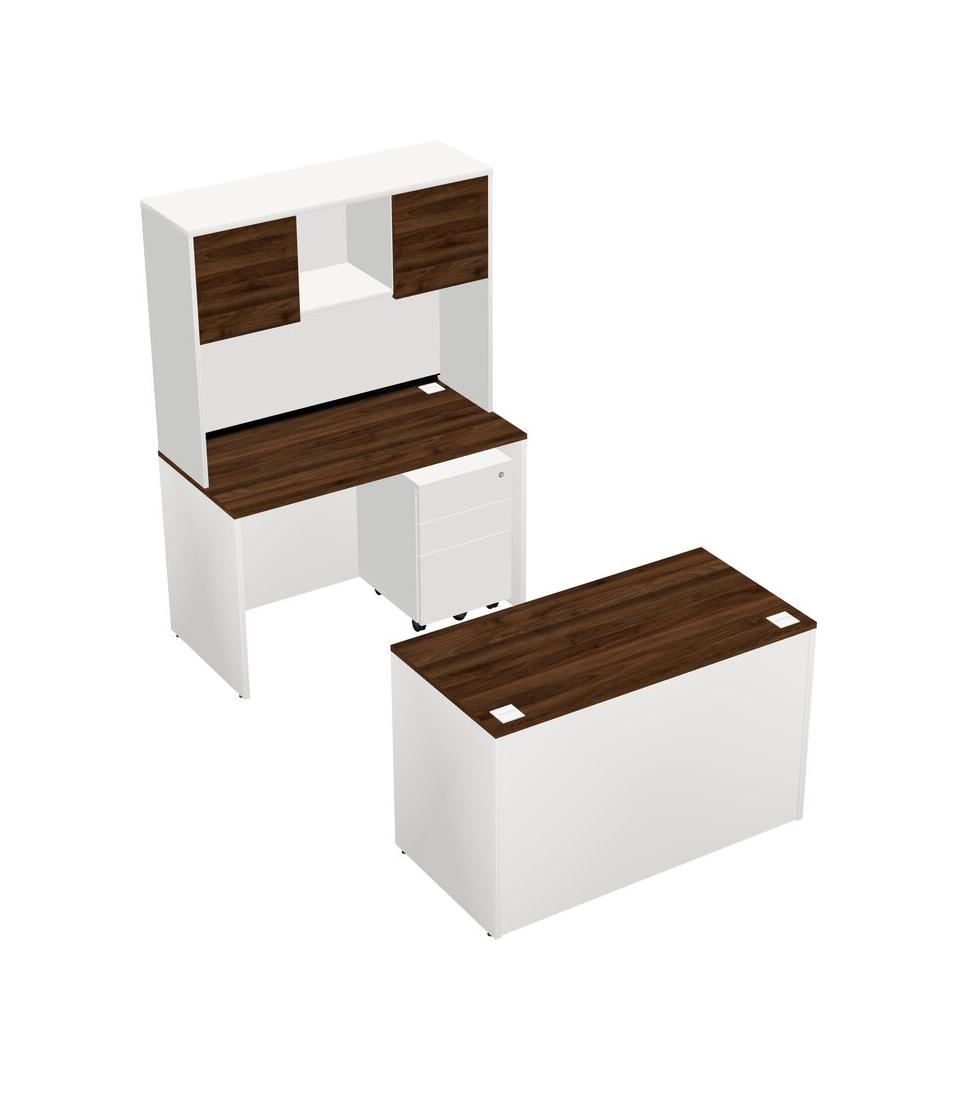 Office Parallel Desk Credenza Desk + Wooden Mobile Drawers + Hutch