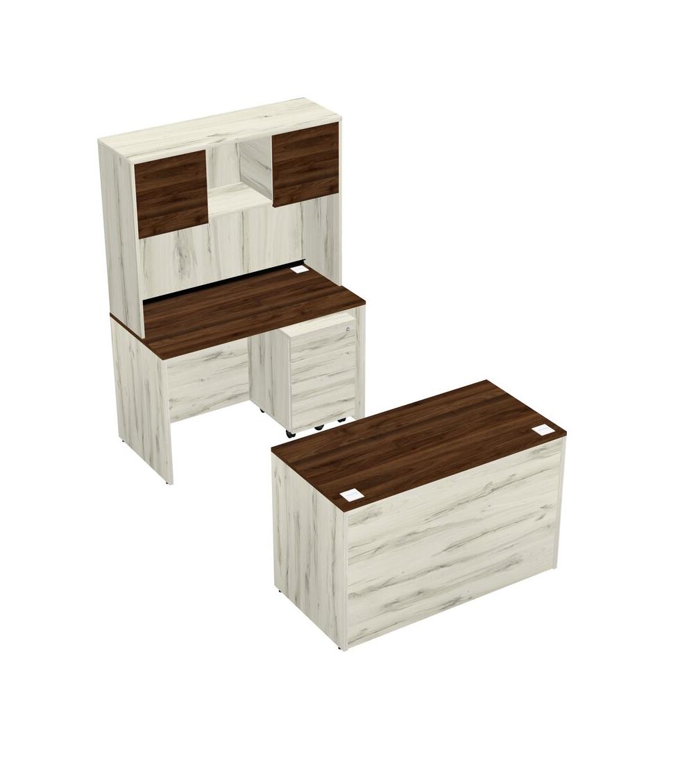 Office Parallel Desk Credenza Desk + Wooden Mobile Drawers + Hutch