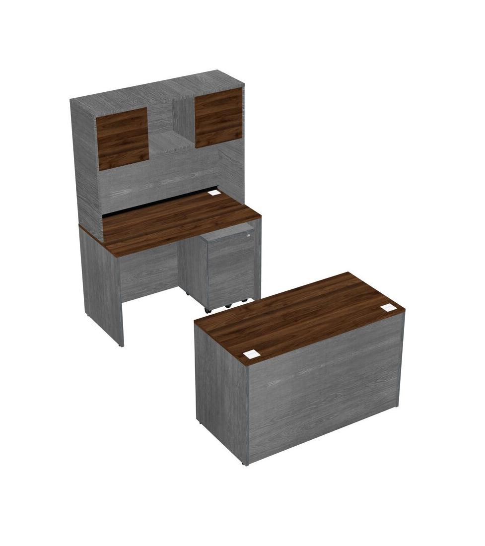 Office Parallel Desk Credenza Desk + Wooden Mobile Drawers + Hutch