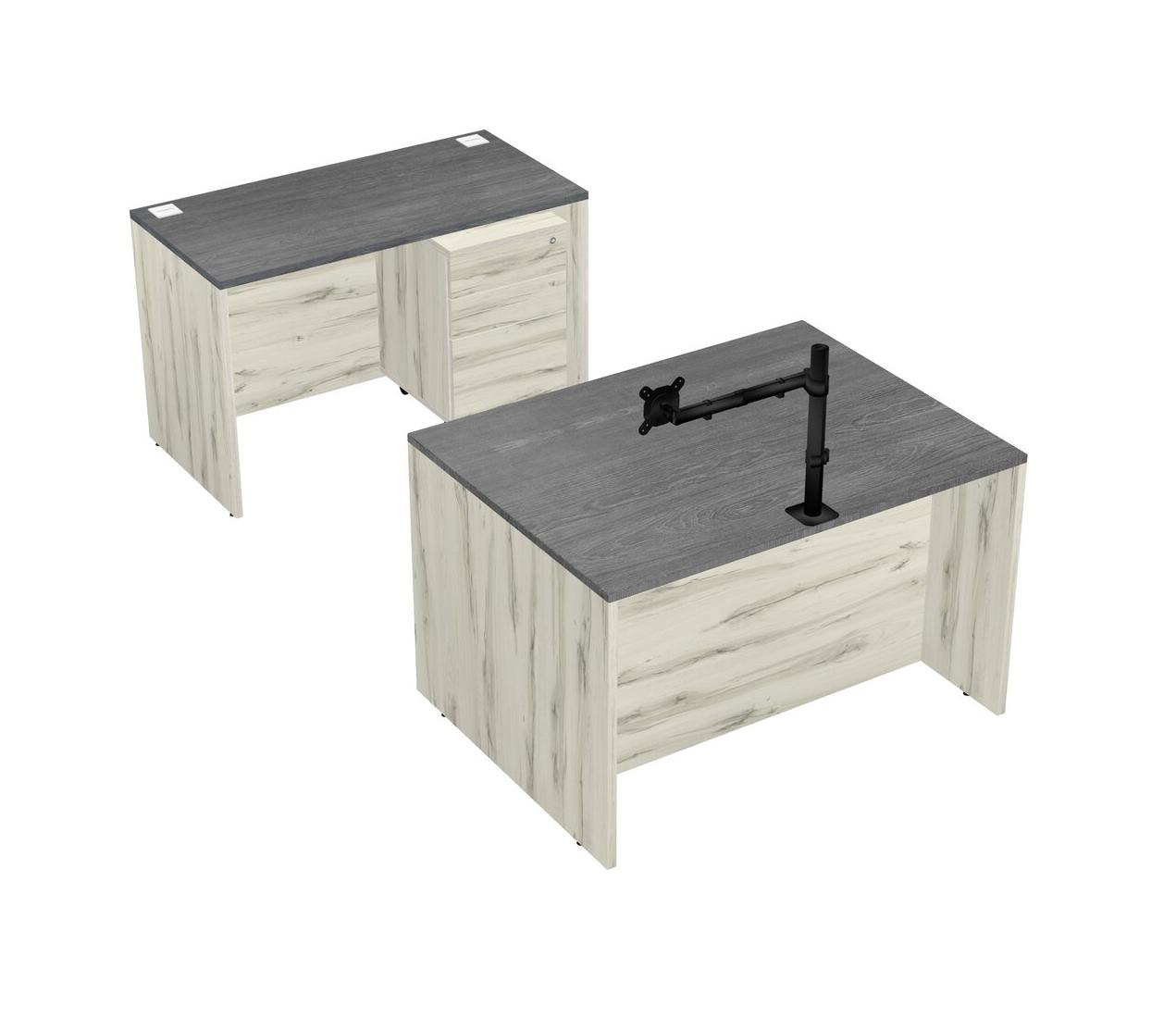 Office Parallel Desk Credenza Desk + Wooden Mobile Drawers + Monitor Arm (single Arm)