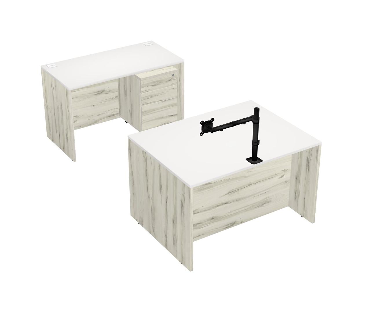 Office Parallel Desk Credenza Desk + Wooden Mobile Drawers + Monitor Arm (single Arm)