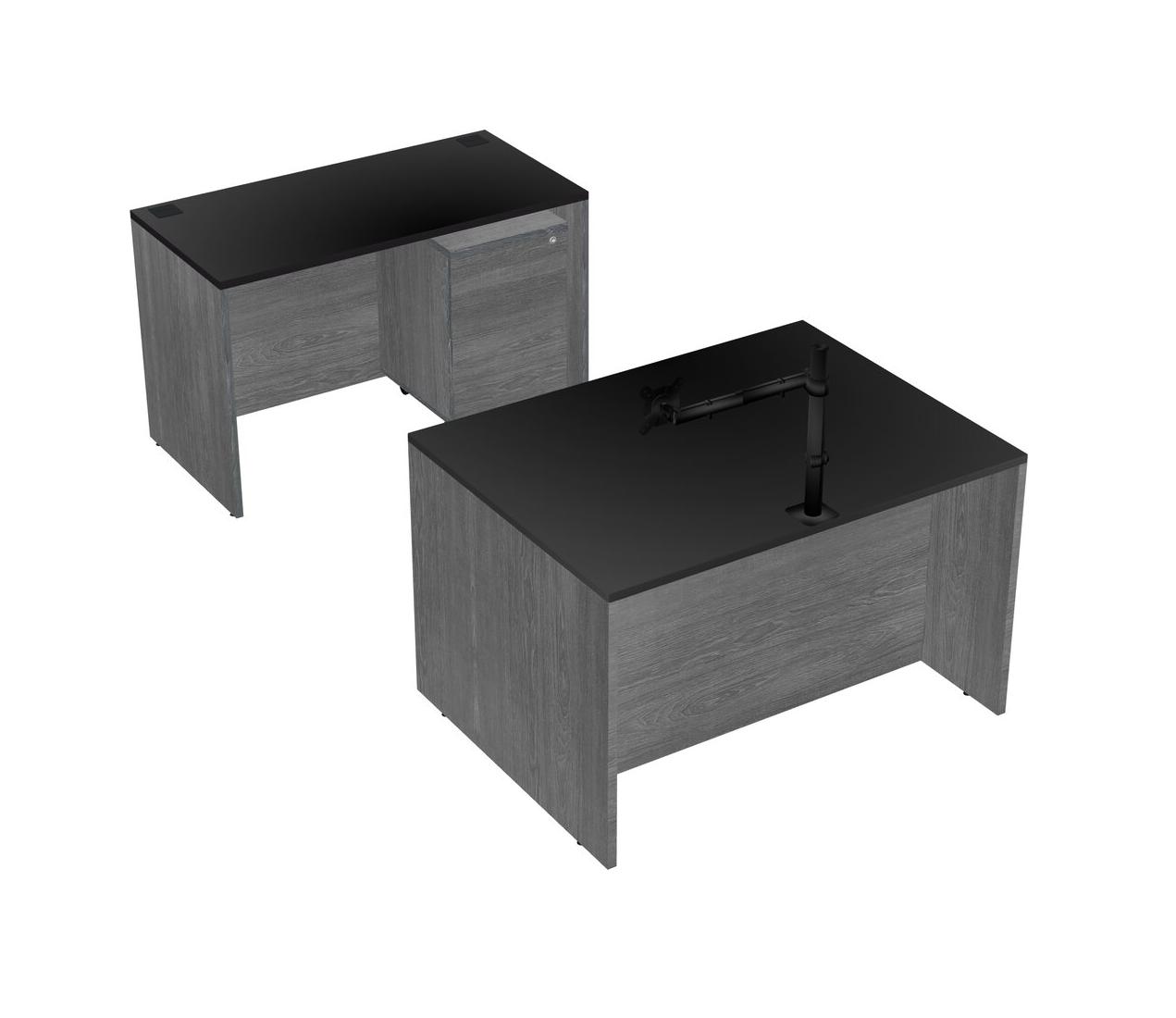 Office Parallel Desk Credenza Desk + Wooden Mobile Drawers + Monitor Arm (single Arm)