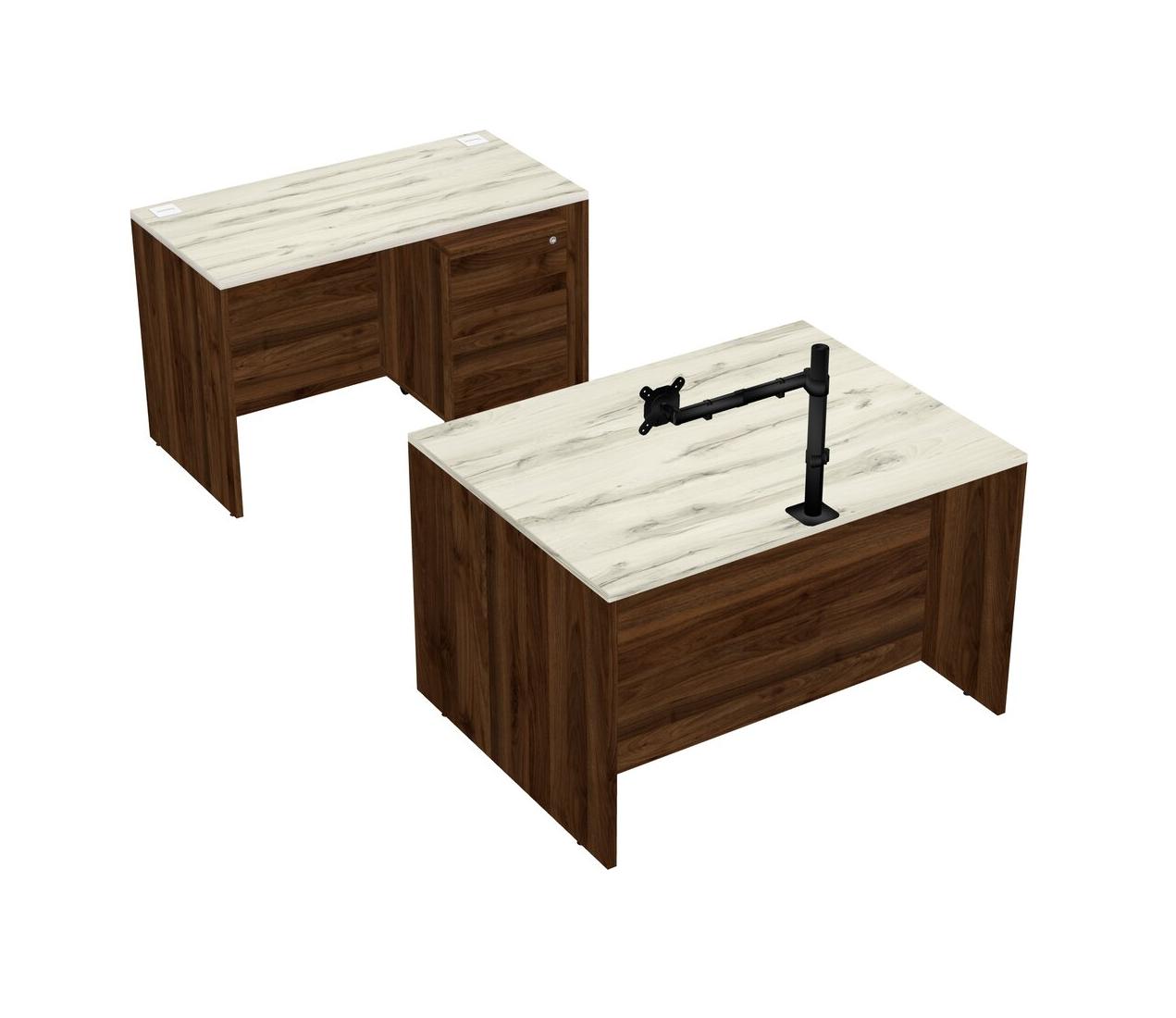 Office Parallel Desk Credenza Desk + Wooden Mobile Drawers + Monitor Arm (single Arm)