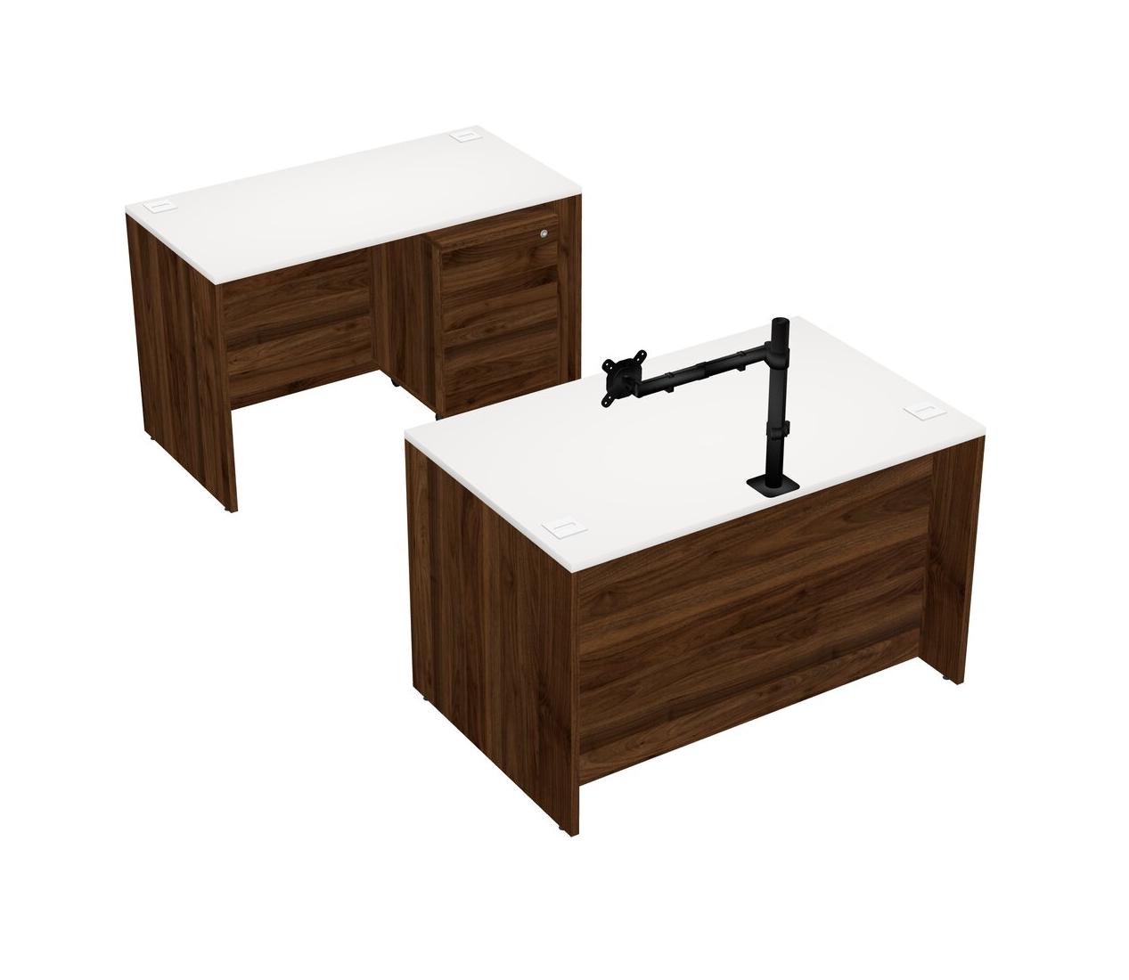 Office Parallel Desk Credenza Desk + Wooden Mobile Drawers + Monitor Arm (single Arm)