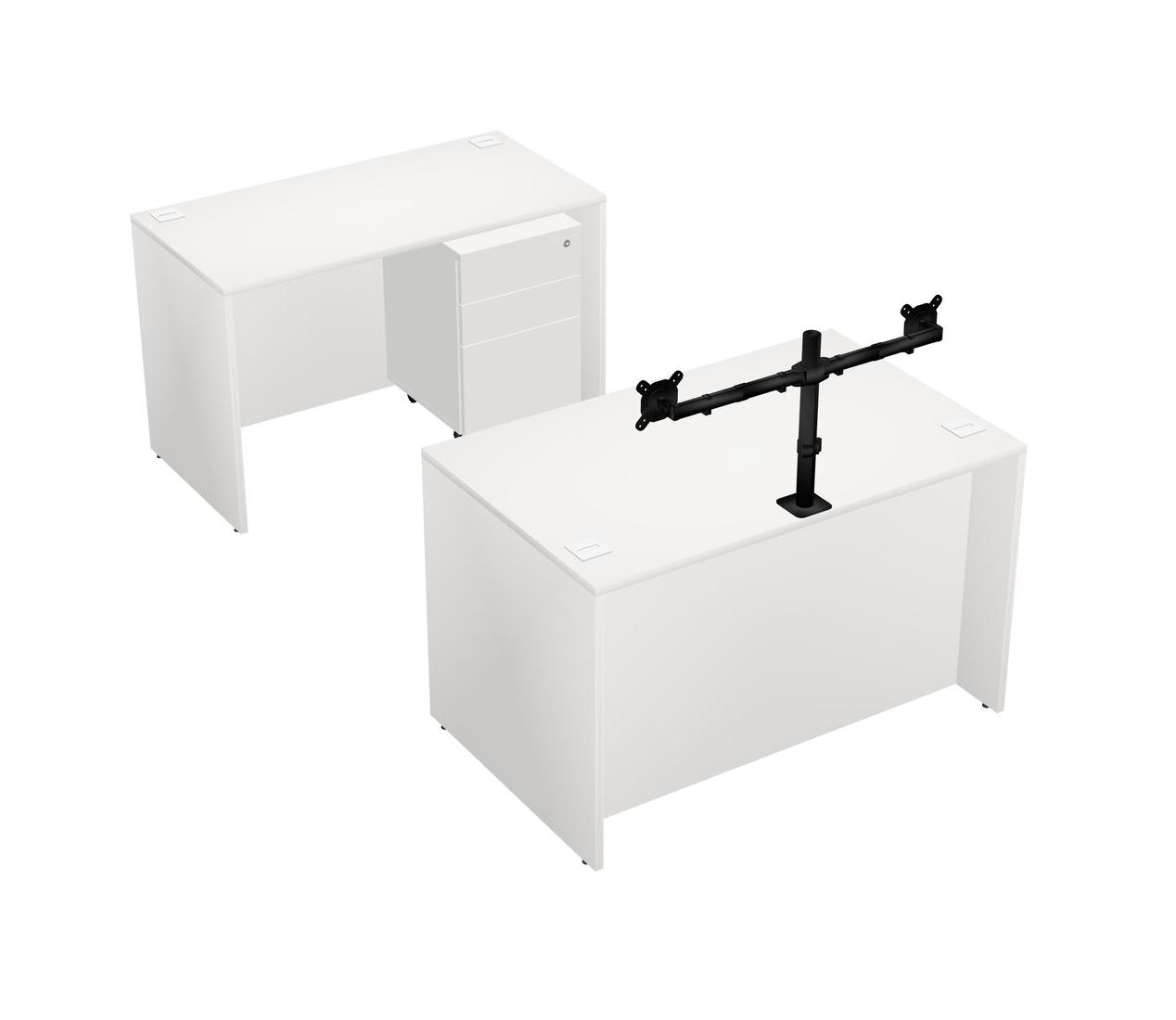 Office Parallel Desk Credenza Desk + Wooden Mobile Drawers + Monitor Arm (double Arms)
