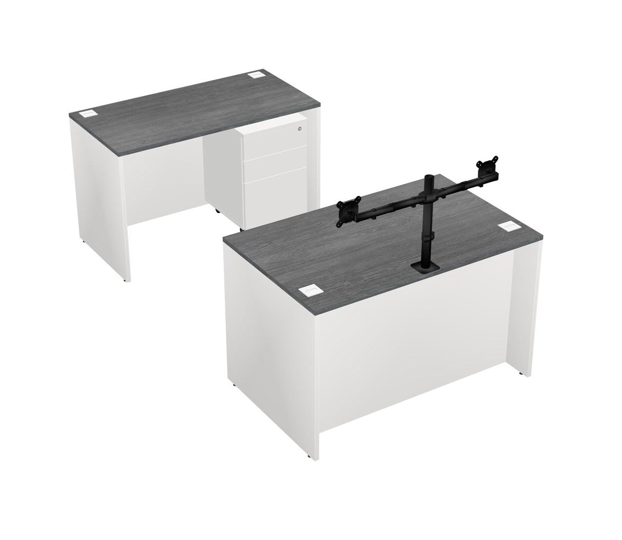 Office Parallel Desk Credenza Desk + Wooden Mobile Drawers + Monitor Arm (double Arms)
