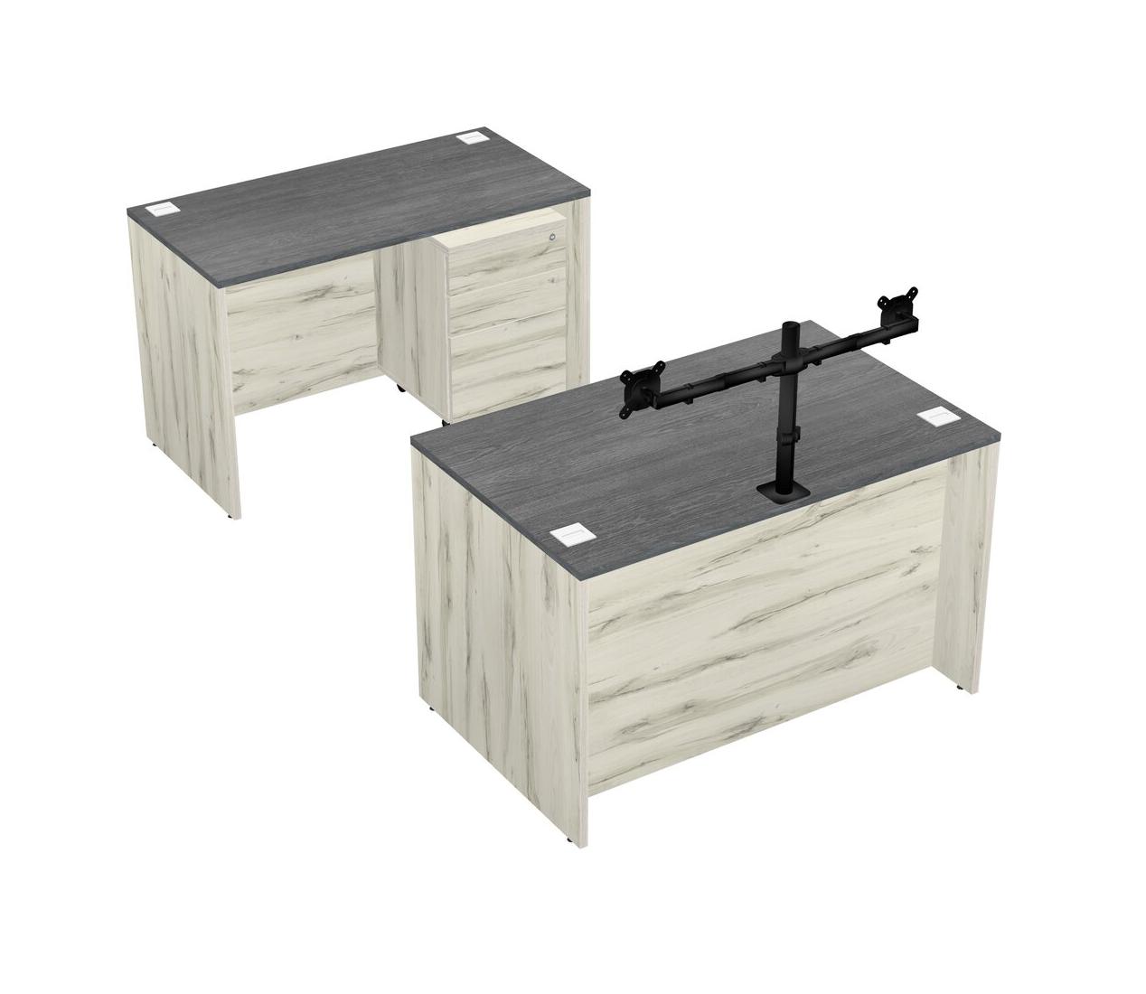 Office Parallel Desk Credenza Desk + Wooden Mobile Drawers + Monitor Arm (double Arms)