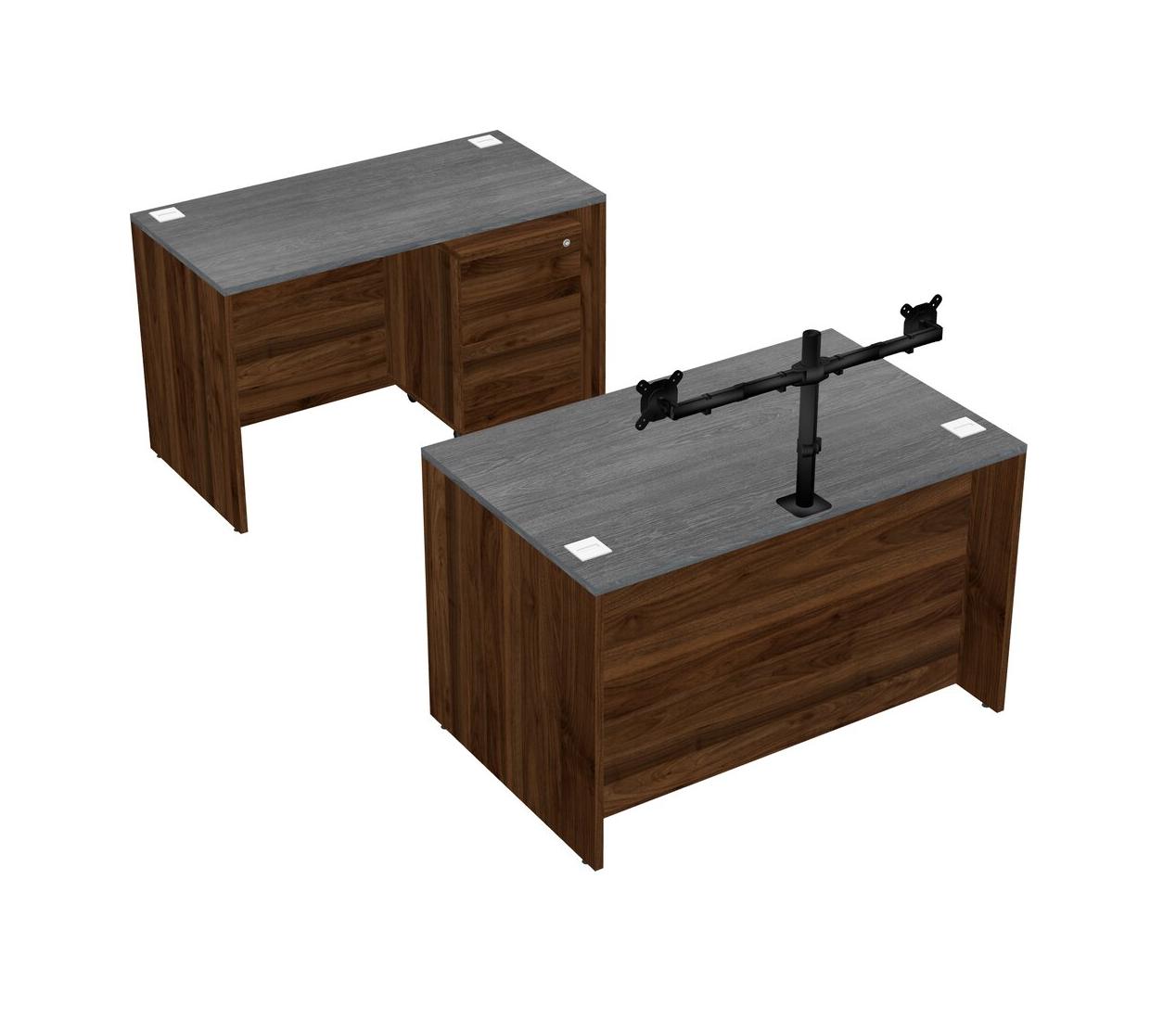 Office Parallel Desk Credenza Desk + Wooden Mobile Drawers + Monitor Arm (double Arms)