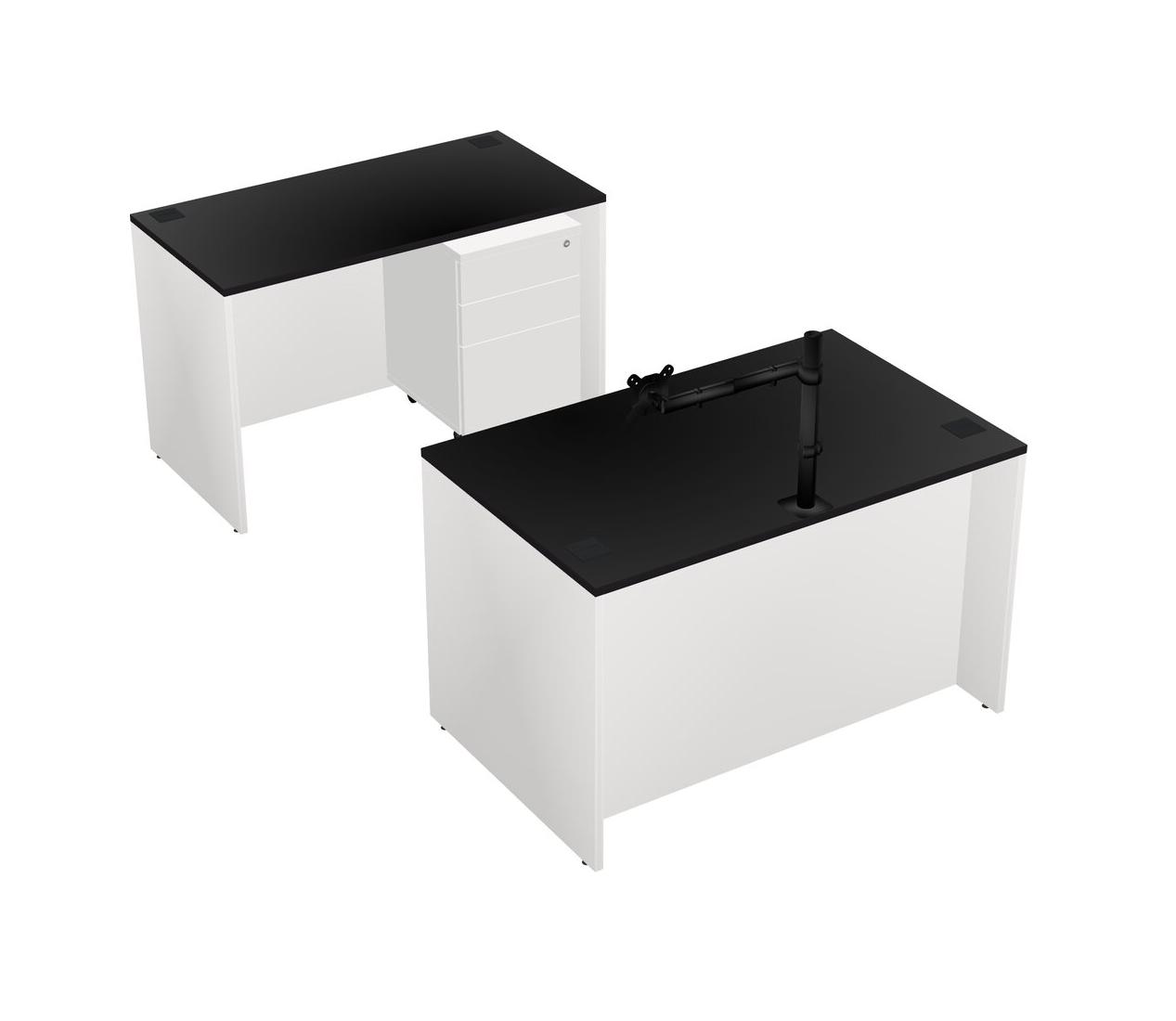 Office Parallel Desk Credenza Desk + Wooden Mobile Drawers + Monitor Arm (single Arm)