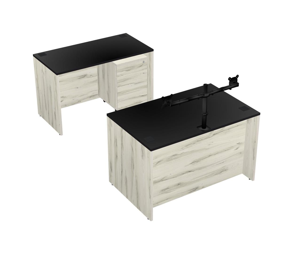 Office Parallel Desk Credenza Desk + Wooden Mobile Drawers + Monitor Arm (double Arms)