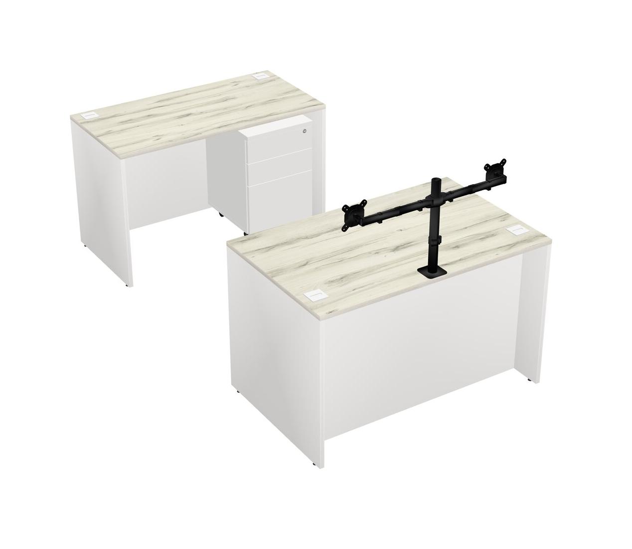 Office Parallel Desk Credenza Desk + Wooden Mobile Drawers + Monitor Arm (double Arms)