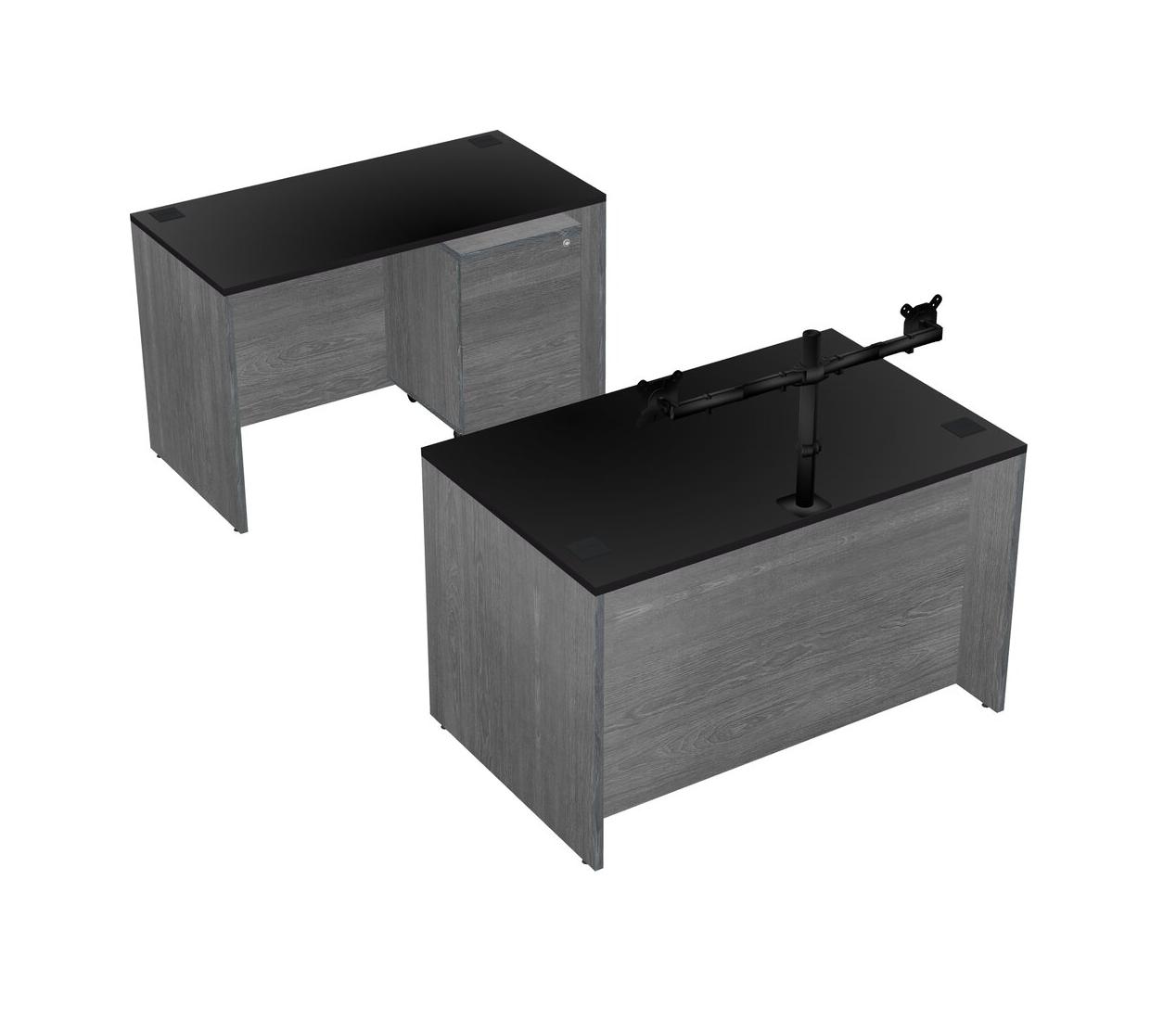 Office Parallel Desk Credenza Desk + Wooden Mobile Drawers + Monitor Arm (double Arms)