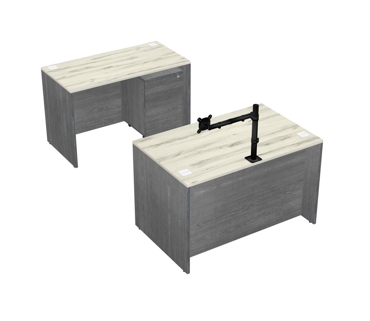 Office Parallel Desk Credenza Desk + Wooden Mobile Drawers + Monitor Arm (single Arm)