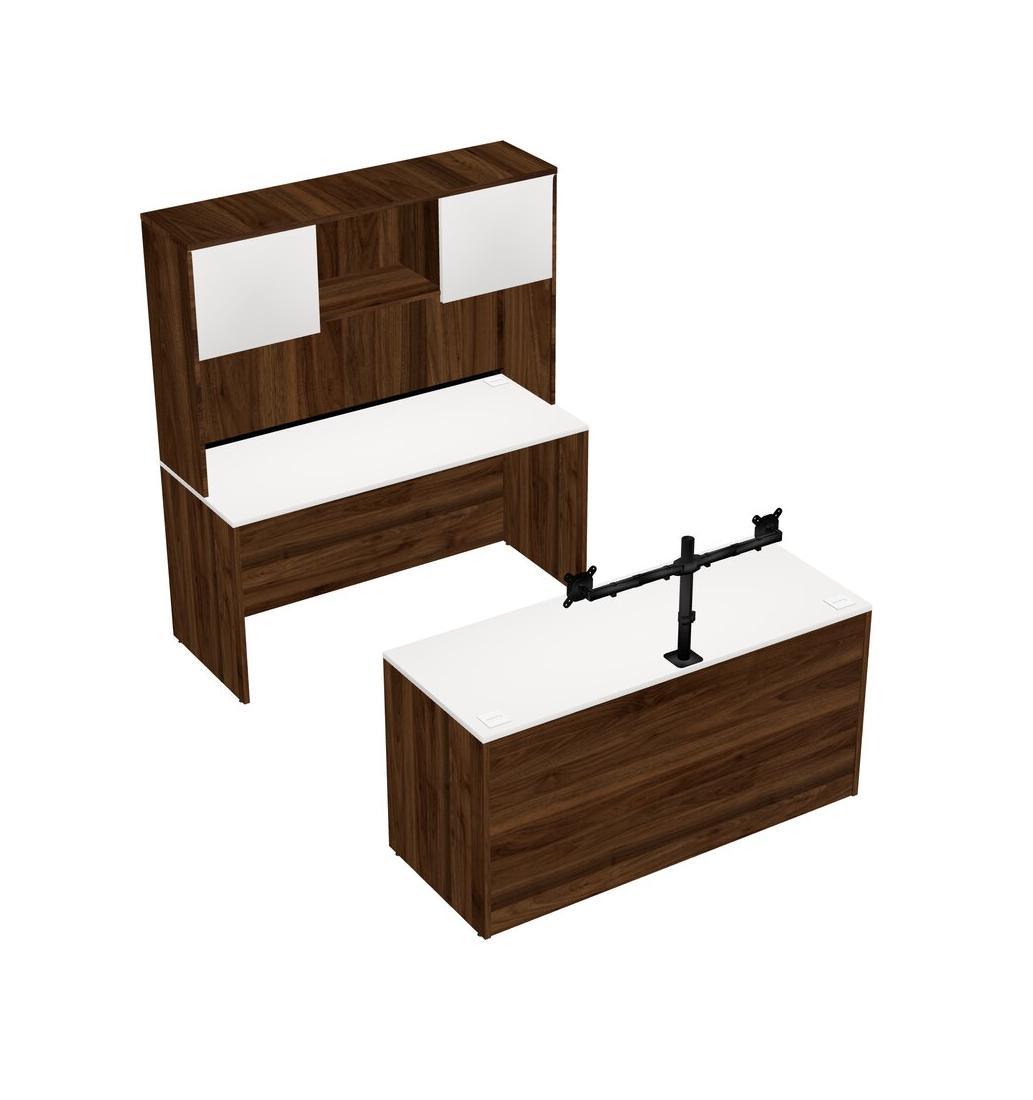 Office Parallel Desk Credenza Desk + Hutch + Monitor Arm (double Arms)
