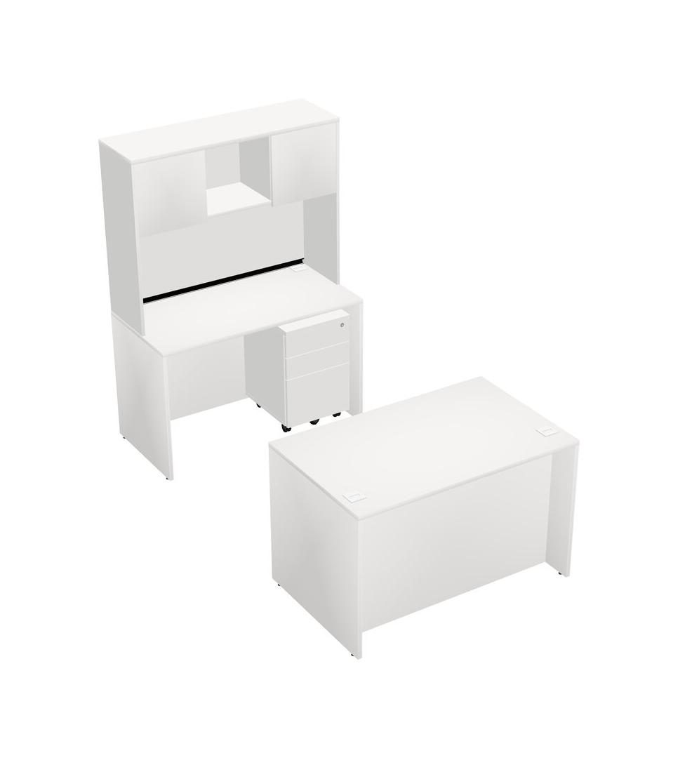 Office Parallel Desk Credenza Desk + Wooden Mobile Drawers + Hutch