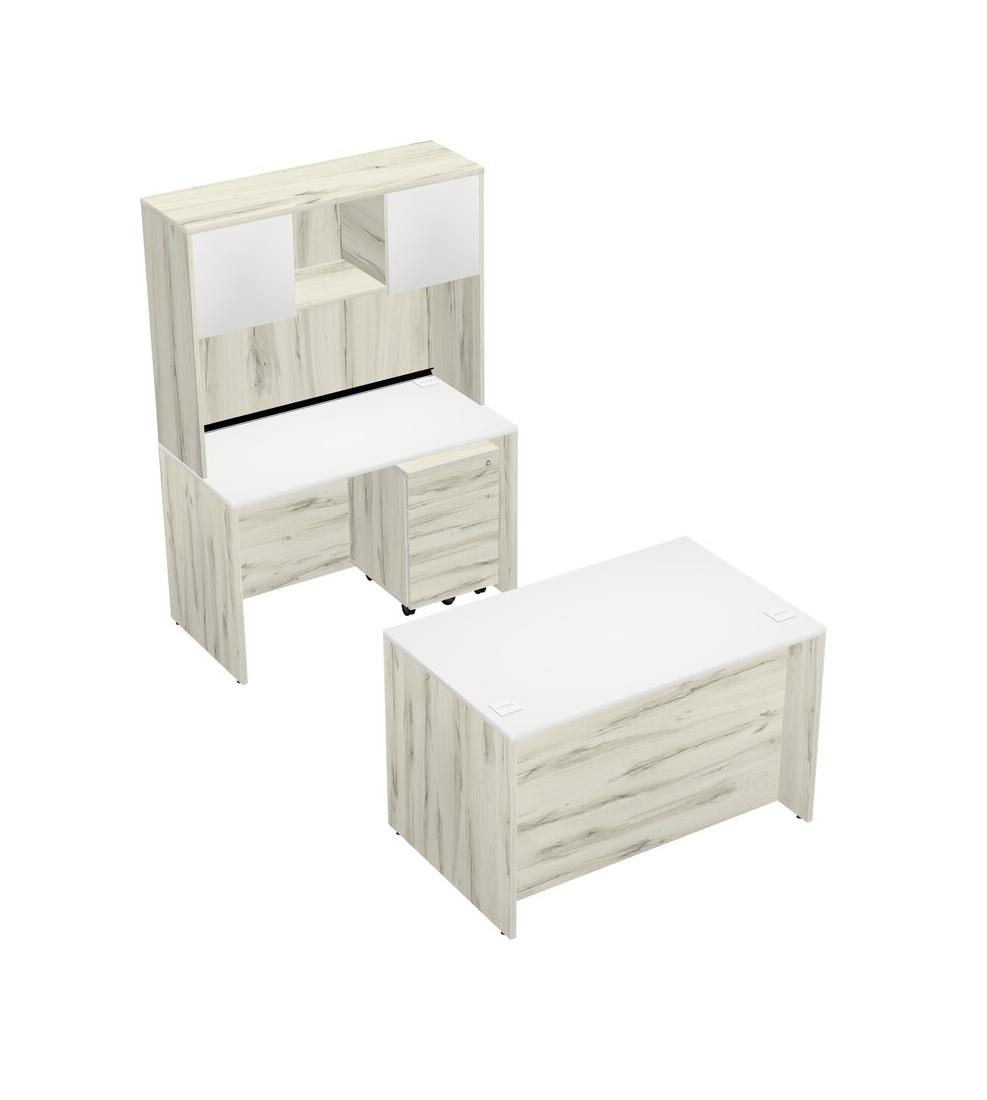 Office Parallel Desk Credenza Desk + Wooden Mobile Drawers + Hutch