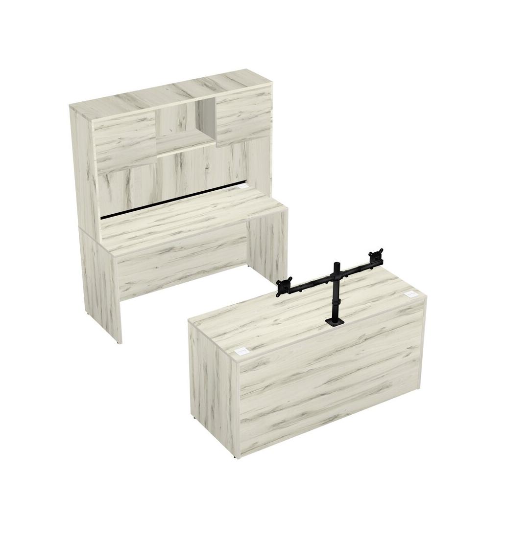 Office Parallel Desk Credenza Desk + Hutch + Monitor Arm (double Arms)