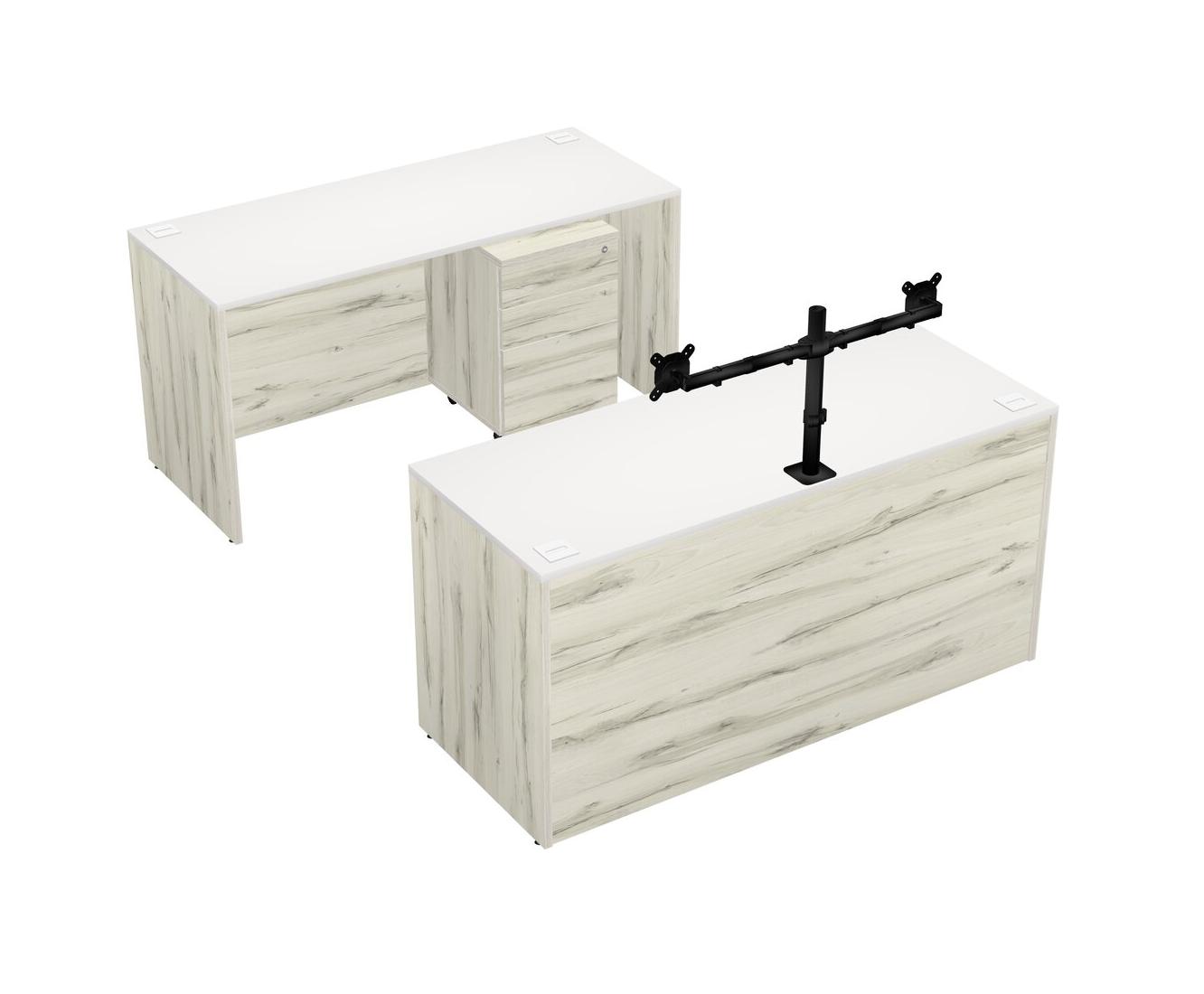 Office Parallel Desk Credenza Desk + Wooden Mobile Drawers + Monitor Arm (double Arms)