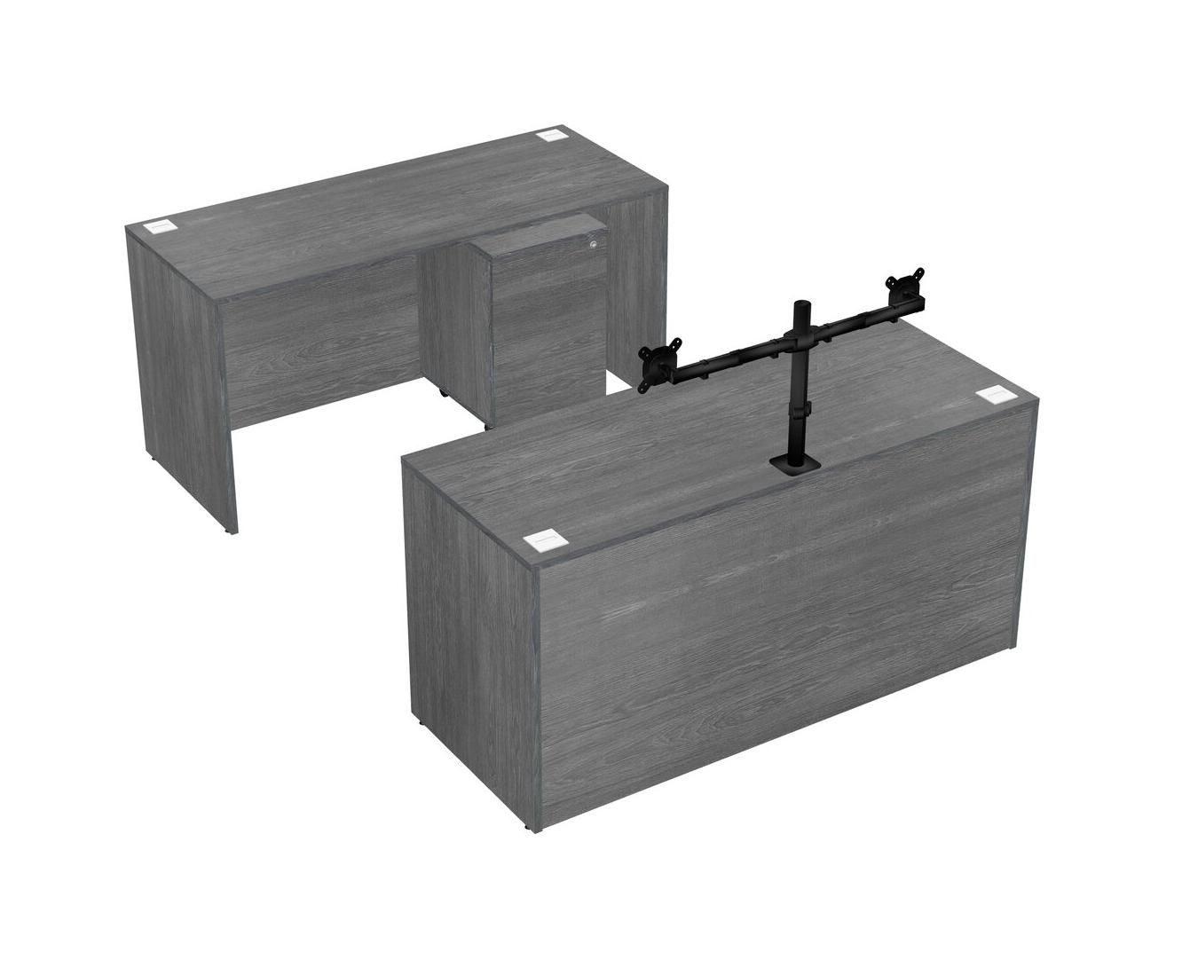 Office Parallel Desk Credenza Desk + Wooden Mobile Drawers + Monitor Arm (double Arms)