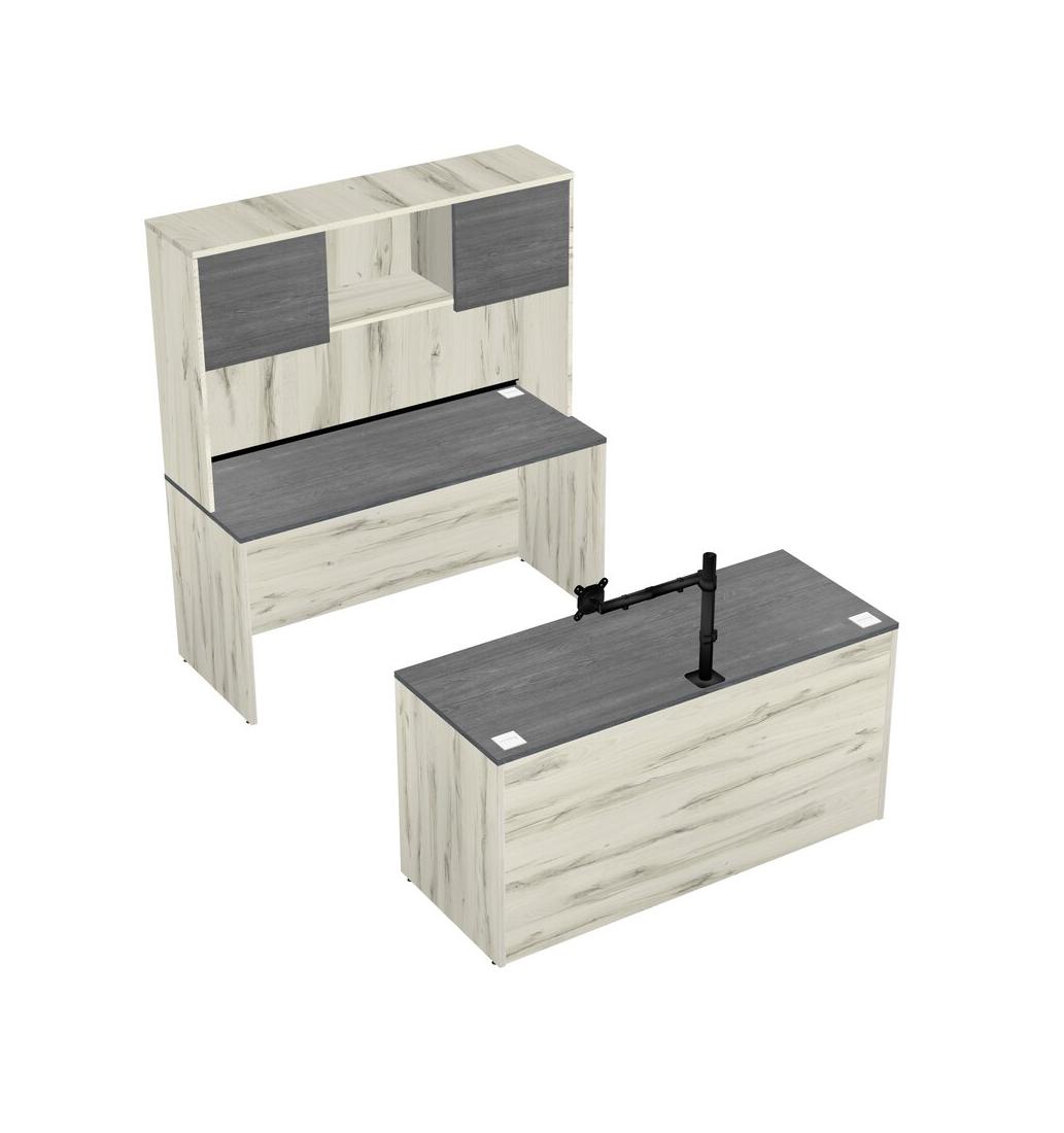 Office Parallel Desk Credenza Desk + Hutch + Monitor Arm (single Arm)